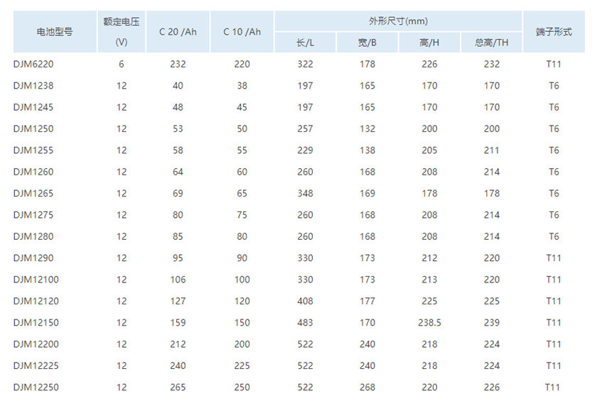 理士DJM系列阀控式密封铅酸蓄电池广泛使用在通信系统、电力系统、应急灯照明系统、自动化控制系统、消防和安全警报系统、太阳能、风能系统、计算机备用电源、便携式仪器、仪表、医疗系统设备、电动车、电动工具等。